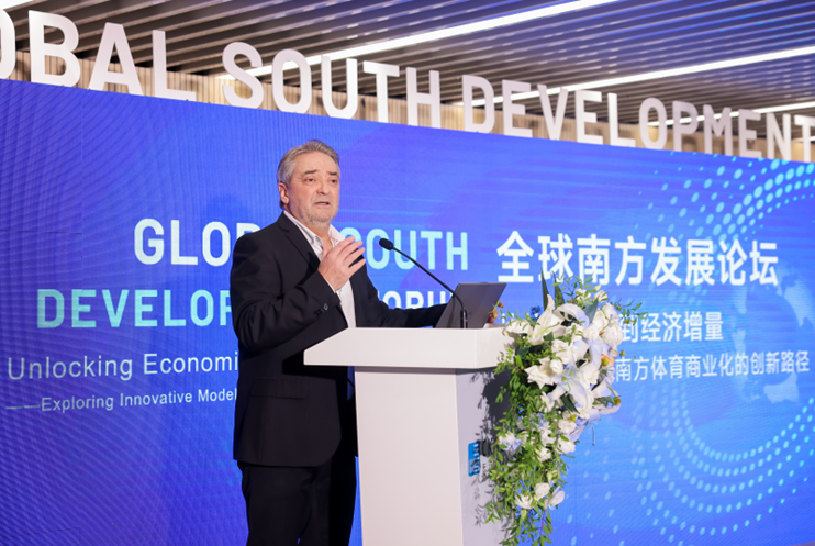 李海涛院长认为,在世界经济新形势下,全球南方国家具有广泛共同利益和天然互补优势。他强调体育是各国增强互信与交流互鉴的重要窗口,并提议以体育经济为紧密合作的新起点带动品牌、产品与服务的协同落地,构建南南合作命运共同体。